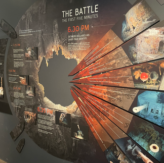 Inside the Discovery Center, you can watch the "2nd part" of the 3D video project form the 2015 expedition. (I watched the first one, "From Great Depths" in Geraldton a few days ago.) This part is called "Fire on the Water" and it is more specifically focused on how the battle unfolded that day. It provides a minute timeline and the film takes you to the parts of the wrecks that show the damage sustained during the battle. Again the 3D-effect made this all the more poignant. The final footage you see is a number of shoes that are strewn around the wreck of the Sydney. Some of them, as in the picture below, are now home to sea anemones. You imagine each pair of shoes belonging to one of the men on the Sydney and the horrible darkness that swallowed them that day.